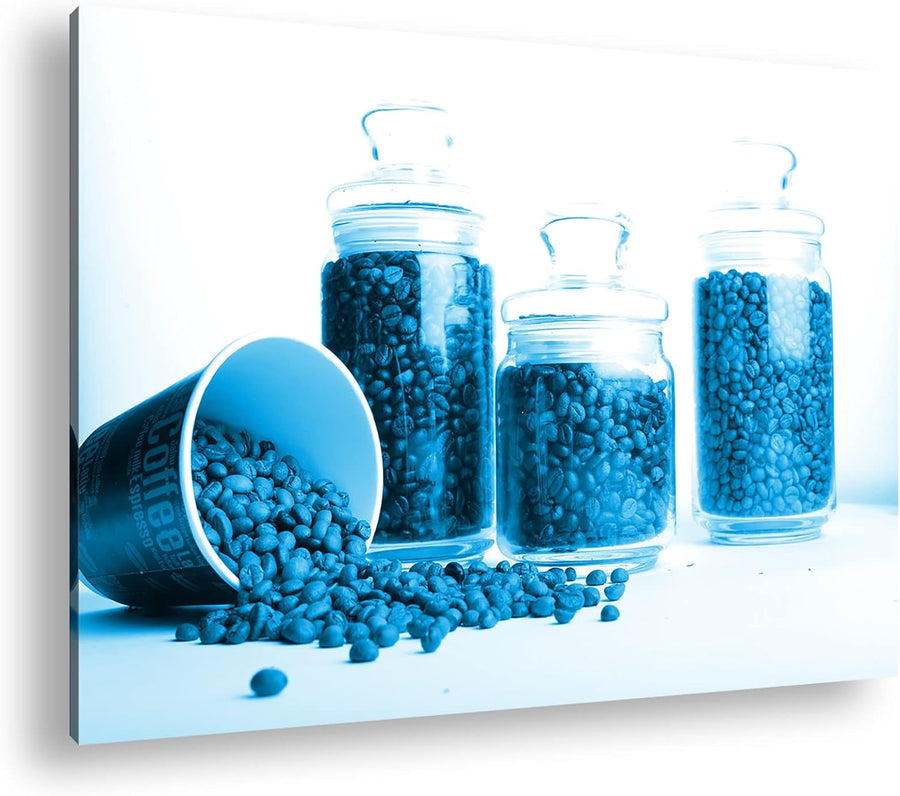 deyoli edle Kaffeebohnen Format: 100x70 Effekt: Monocrome Blau als Leinwand, Motiv fertig gerahmt au