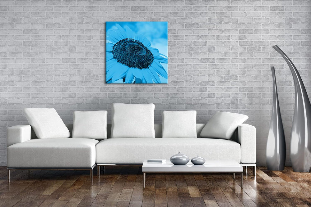 deyoli edle Sonnenblume Format: 60x60 Effekt: Monocrome Blau als Leinwandbild, Motiv fertig gerahmt