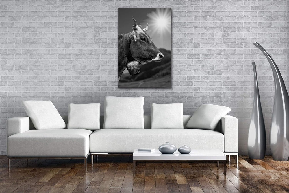 deyoli edle Alpen Kuh Format: 60x40 Effekt: Schwarz&Weiss als Leinwandbild, Motiv fertig gerahmt auf