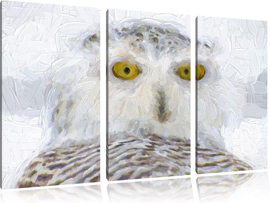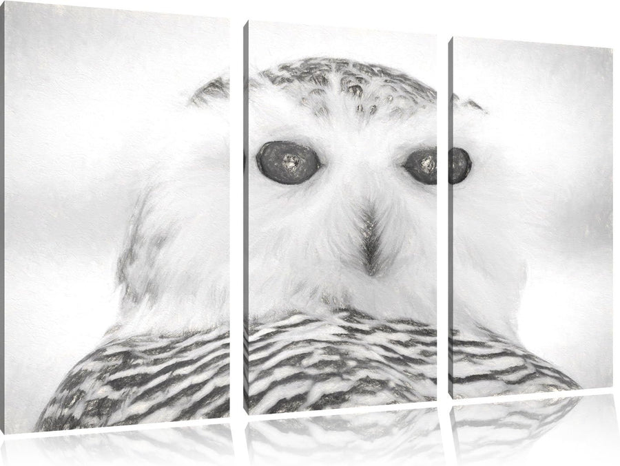 Pixxprint Schnee-Eule als Leinwandbild/Grösse: 3 Teilig (120x80) cm/Wandbild/Kunstdruck/fertig bespa