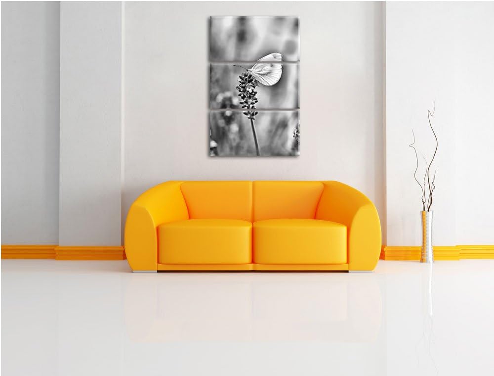 Pixxprint Schmetterlinge auf Lavendelblumen als Leinwandbild/Grösse: 3 Teilig (120x80 cm) cm/Wandbil