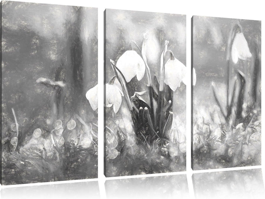 Pixxprint Schneeglöckchen als Leinwandbild/Grösse: 3 Teilig (120x80) cm/Wandbild/Kunstdruck/fertig b
