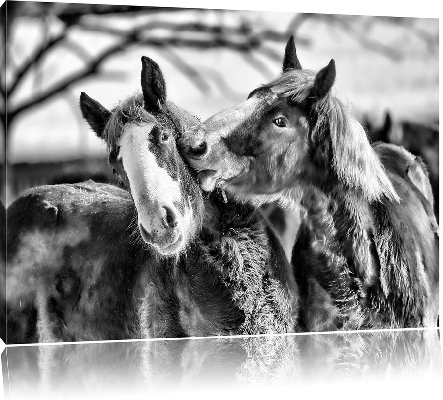Pixxprint schmusende Pferde / 100x70cm Leinwandbild bespannt auf Holzrahmen/Wandbild Kunstdruck Deko