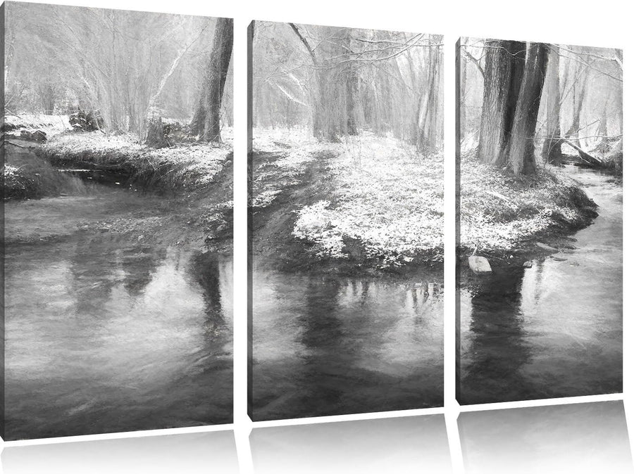 Pixxprint schneebedeckter Waldboden Kunst / 3-Teilig/Gesamtmass 120cm Leinwandbild bespannt auf Holz
