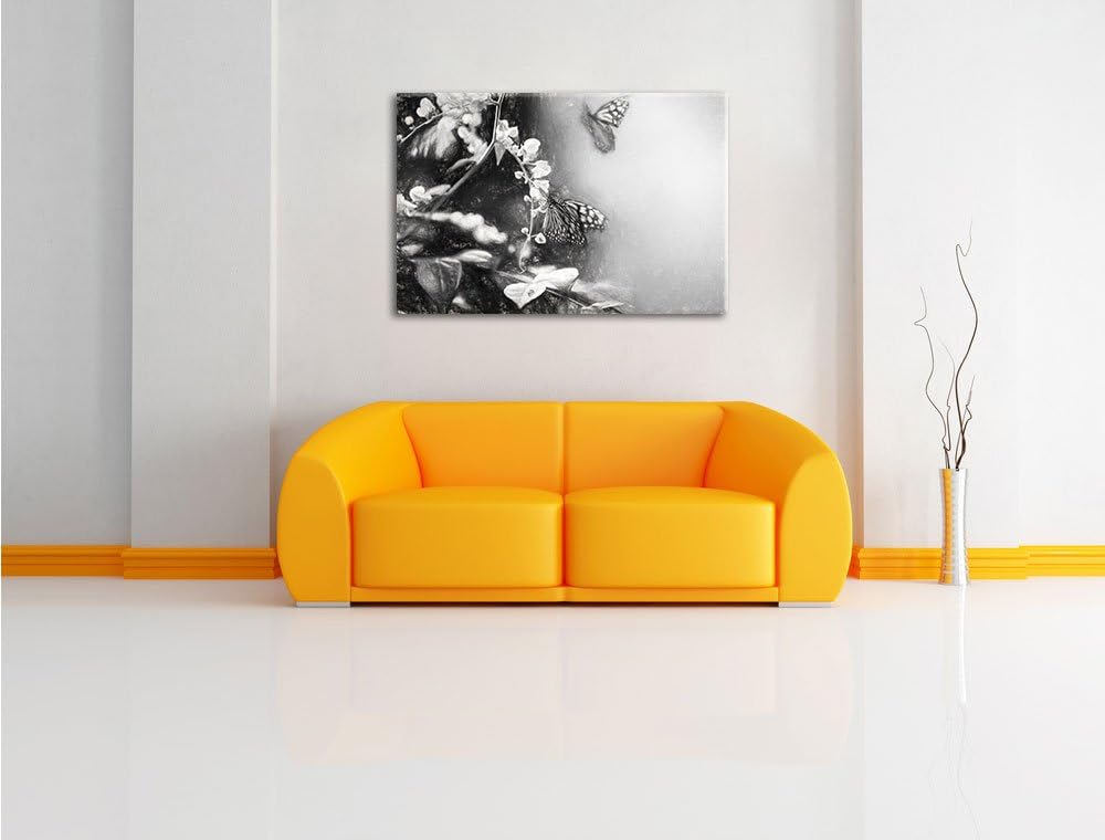 Pixxprint Schmetterlinge auf Blumen als Leinwandbild/Grösse: 100x70 cm/Wandbild/Kunstdruck/fertig be