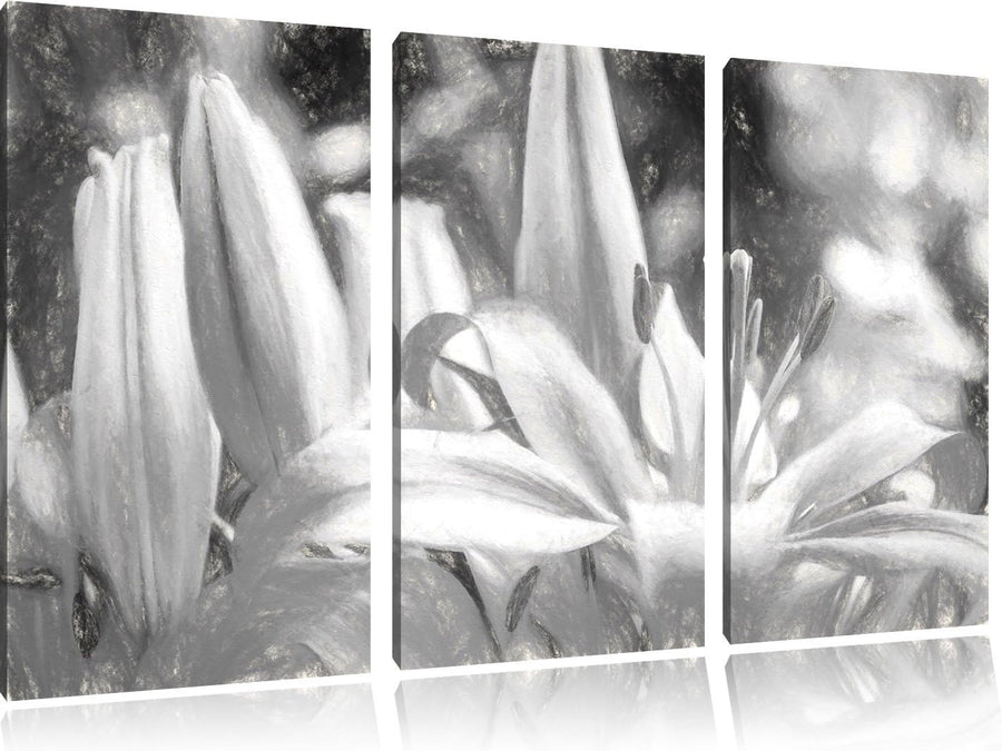 Pixxprint schöne orangene Lilien Kunst B&W als Leinwandbild/Grösse: 3 Teilig (120x80) / Wandbild/Kun