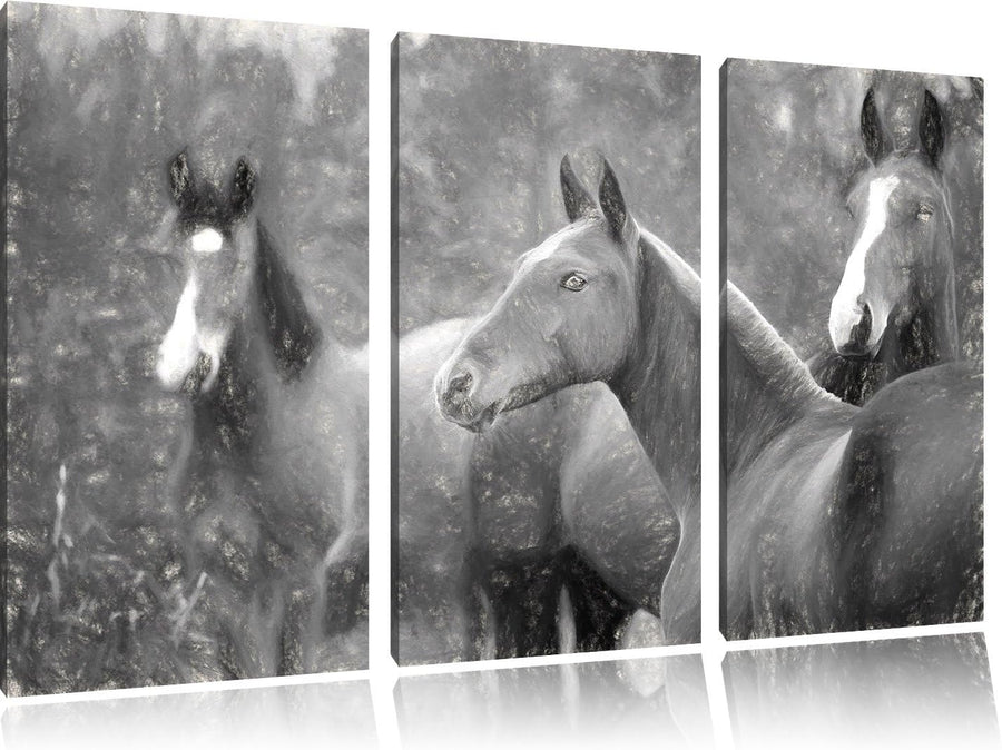 Pixxprint schöne Pferde auf der Wiese Kunst als Leinwandbild/Grösse: 3 Teilig (120x80) cm/Wandbild/K