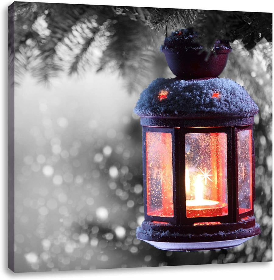 Pixxprint schöne Laterne im Winter als Leinwandbild Quadratisch/Grösse: 70x70 / Wandbild/Kunstdruck/
