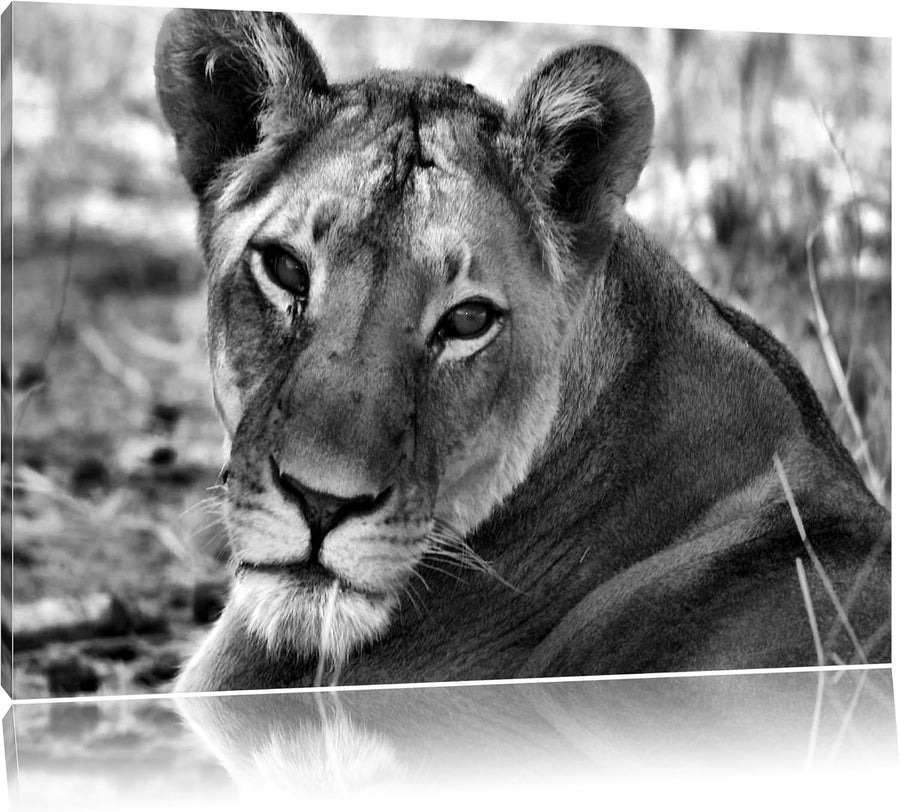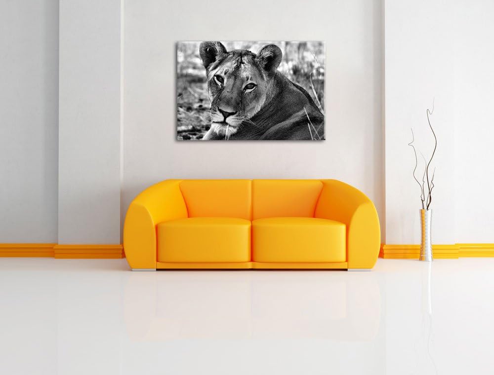 Pixxprint schöne Löwin schwarz/weiss auf Leinwand, XXL riesige Bilder fertig gerahmt mit Keilrahmen,