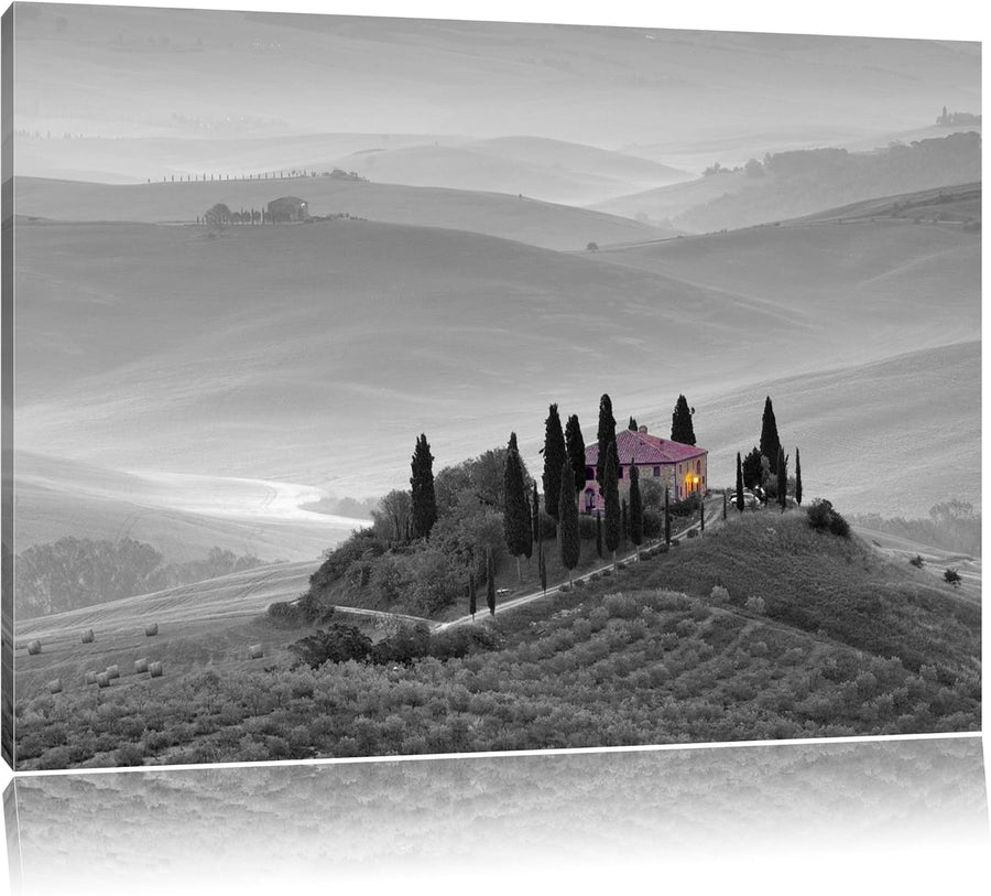 Pixxprint schöne Toskana Landschaft schwarz/weiss Format: 100x70 auf Leinwand, 100x70