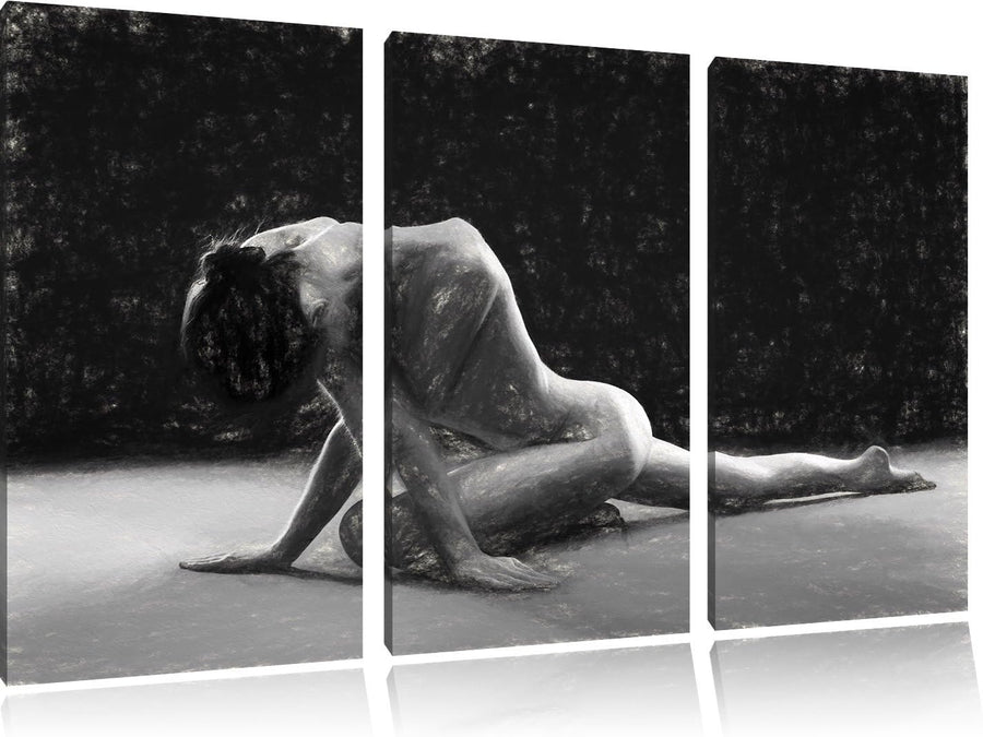 Pixxprint Schöne sexy Frau Macht Yoga Kunst Buntstift Effekt 3-Teiler Leinwandbild 120x80 Bild auf L