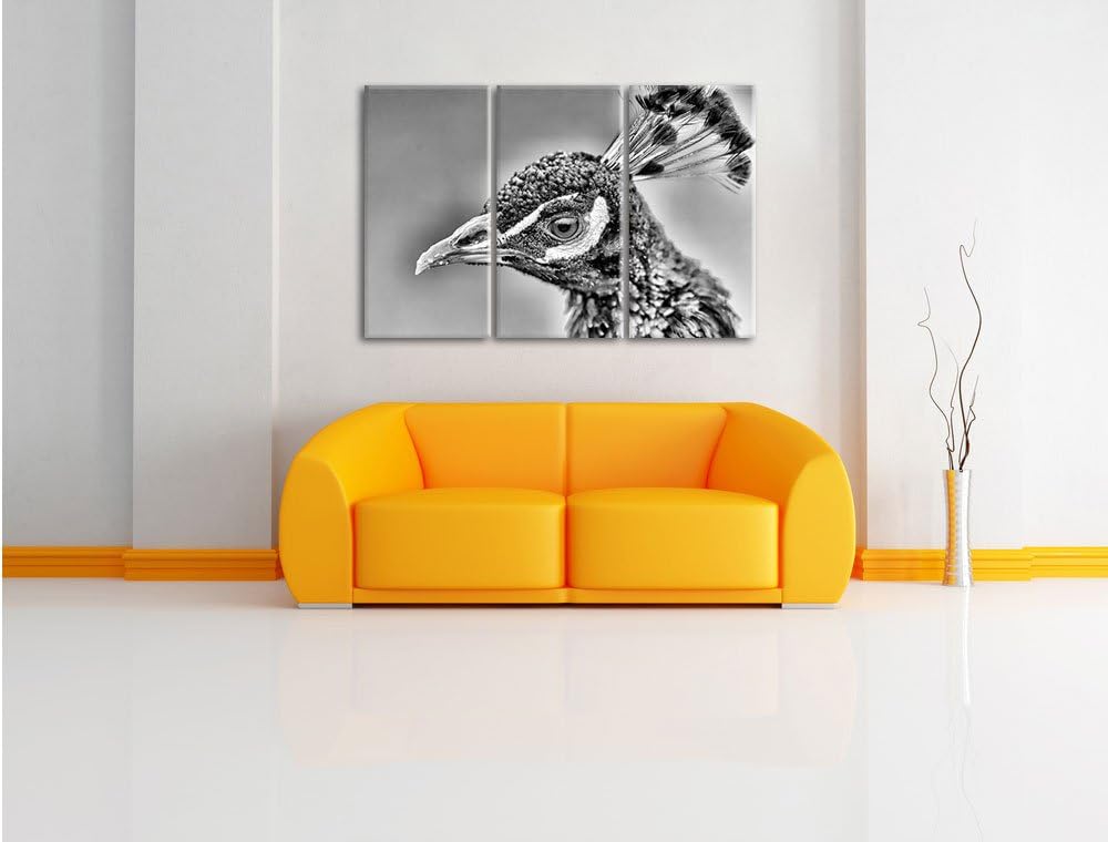 Pixxprint schöner farbenfroher Pfau als Leinwandbild/Grösse: 3 Teilig (120x80) cm/Wandbild/Kunstdruc