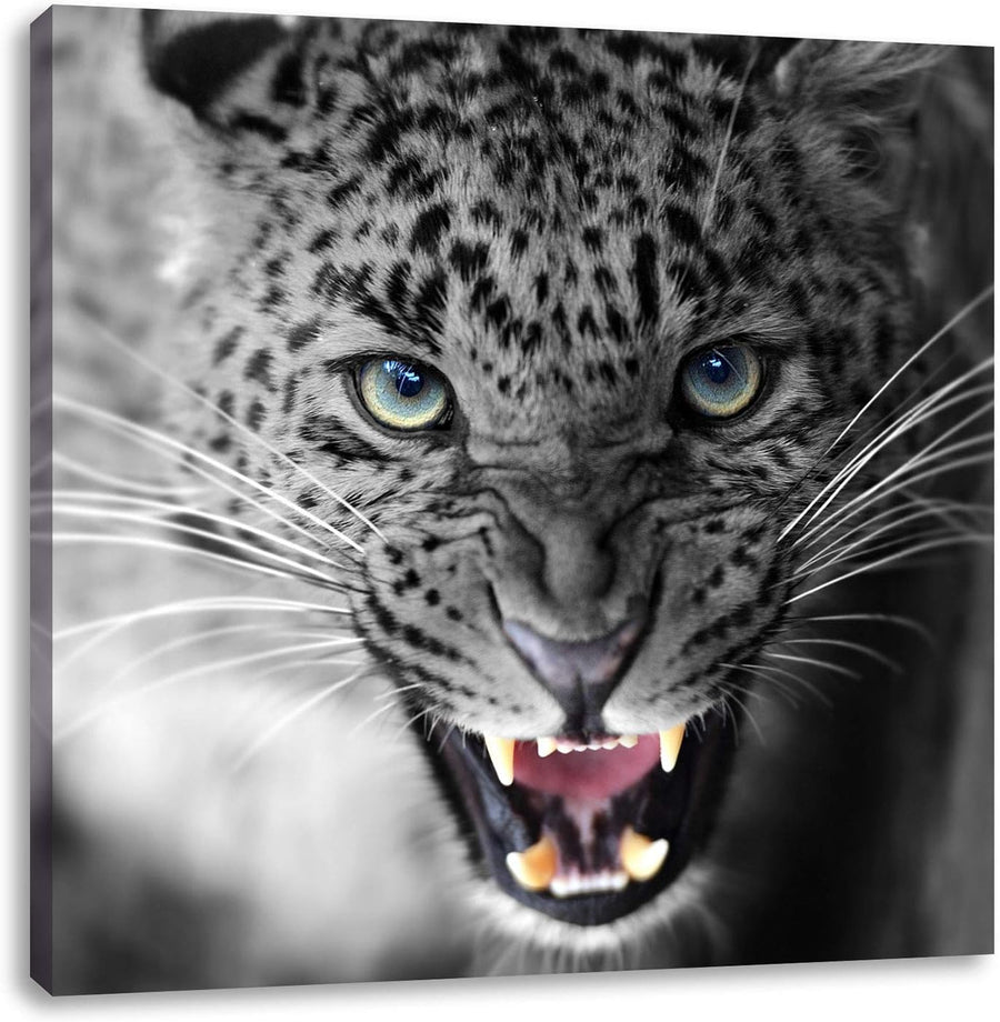 Pixxprint schöner fauchender Leopard als Leinwandbild | Grösse: 70x70 cm | Wandbild | Kunstdruck | f