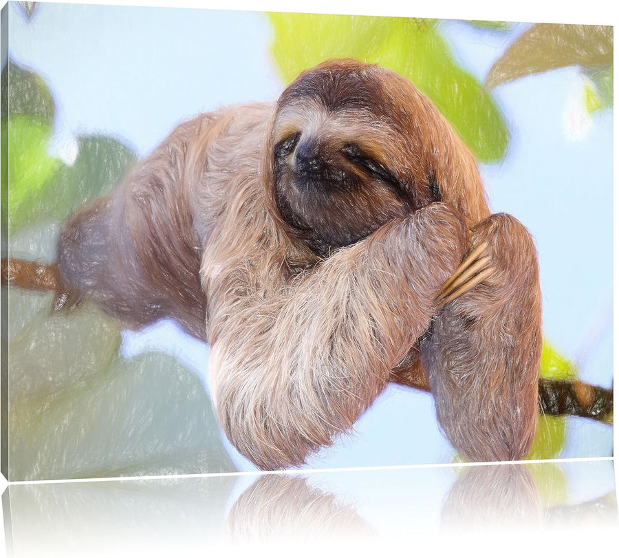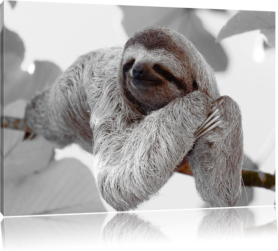 Pixxprint schönes Faultier hängt von AST als Leinwandbild/Grösse: 100x70 cm/Wandbild/Kunstdruck/fert