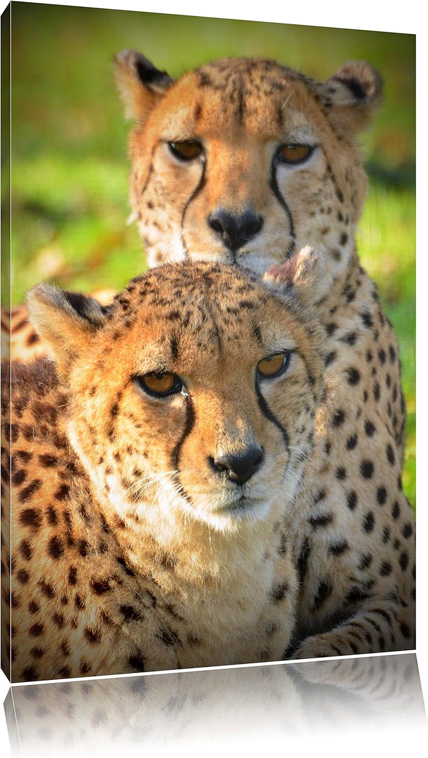 Pixxprint schönes Geparden-Paar auf Leinwand, XXL riesige Bilder fertig gerahmt mit Keilrahmen, Kuns