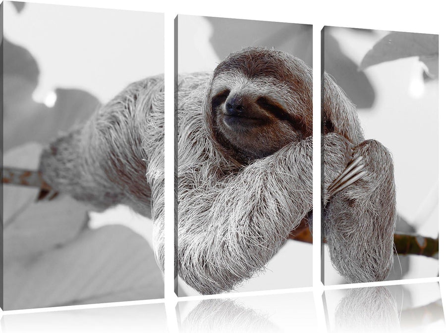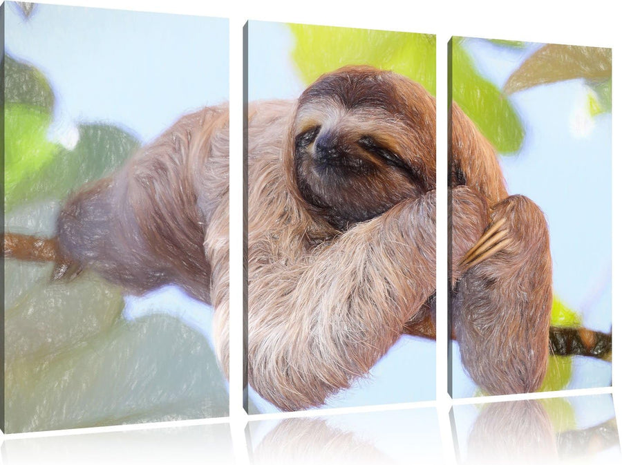 Pixxprint schönes Faultier hängt von AST als Leinwandbild/Grösse: 3Teilig (120x80) / Wandbild/Kunstd
