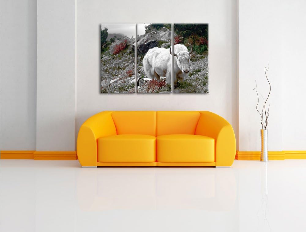 Pixxprint Schönes Yak Himalaya B&W Detail 3-Teiler Leinwandbild 120x80 Bild auf Leinwand
