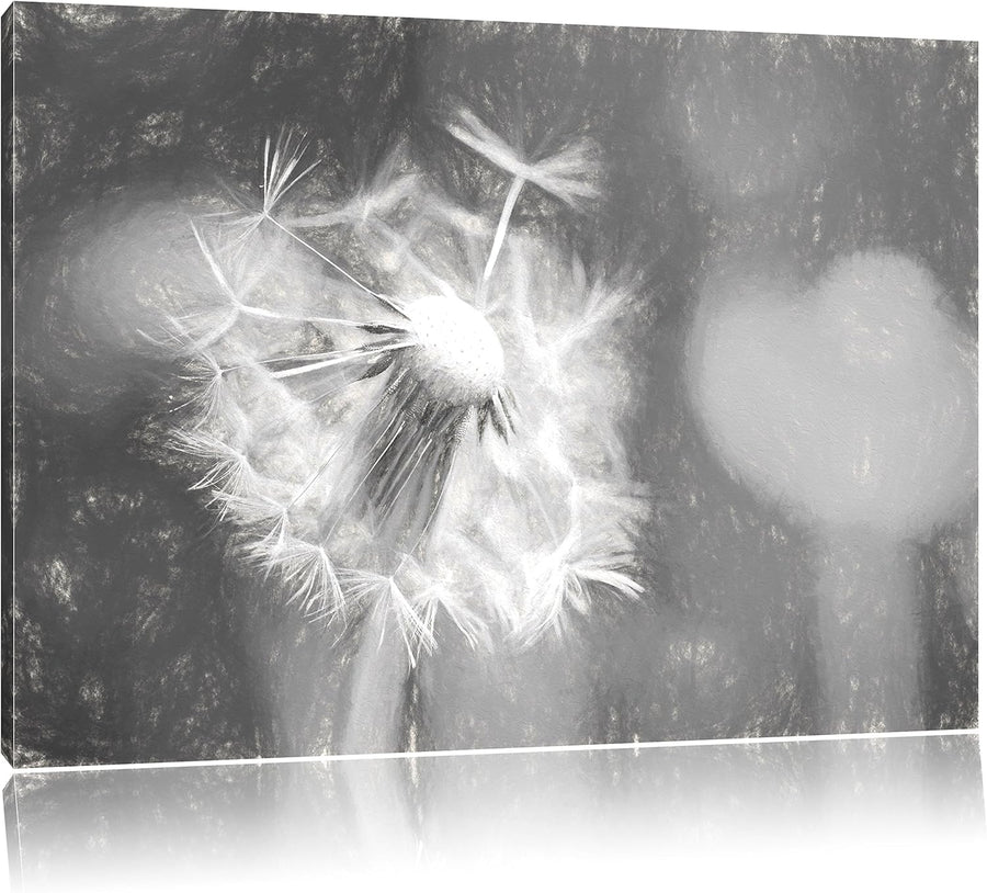Pixxprint Schöner weisser Löwenzahn Kunst Kohle Effekt, Format: 100x70 auf Leinwand, XXL riesige Bil