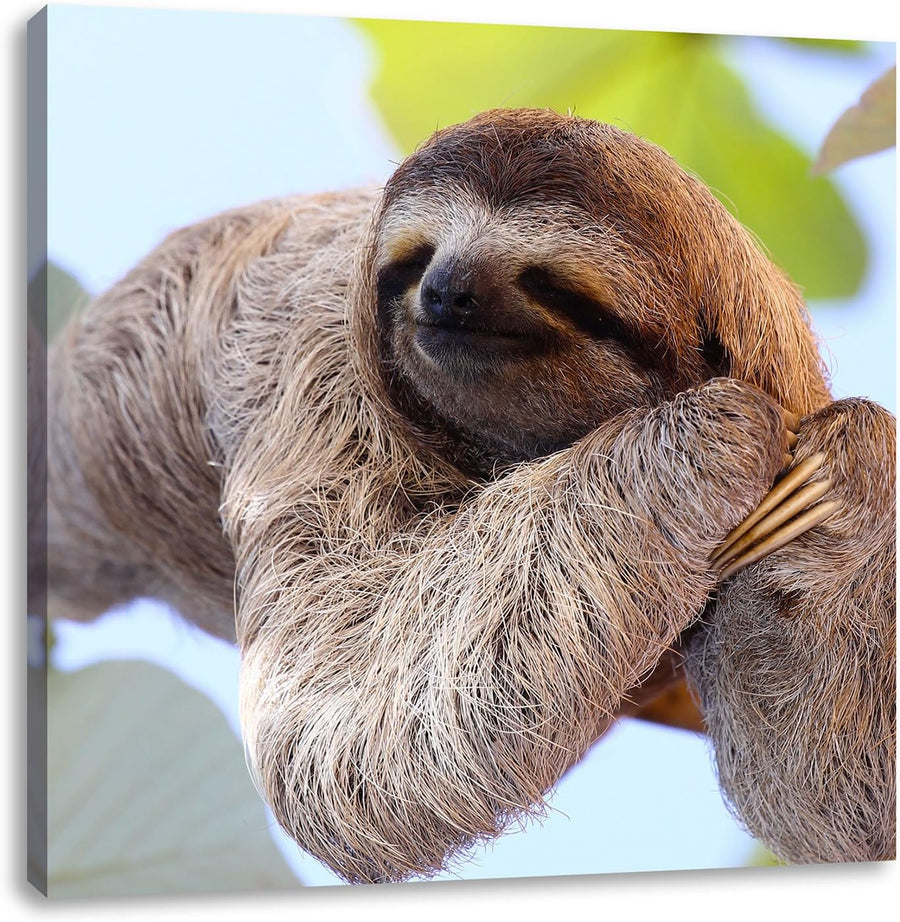 Pixxprint schönes Faultier hängt von AST als Leinwandbild/Grösse: 70x70 cm/Wandbild/Kunstdruck/ferti