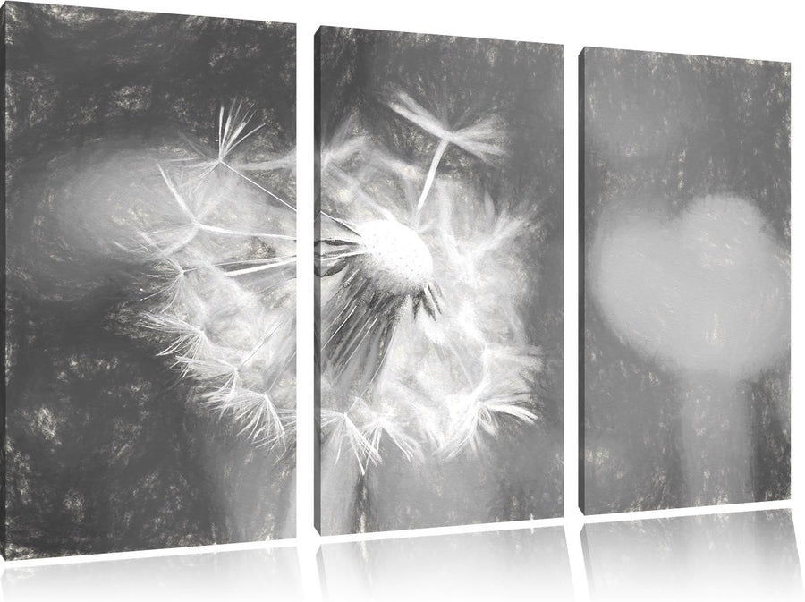 Pixxprint Schöner weisser Löwenzahn Kunst / 3-Teilig/Gesamtmass 120cm Leinwandbild bespannt auf Holz