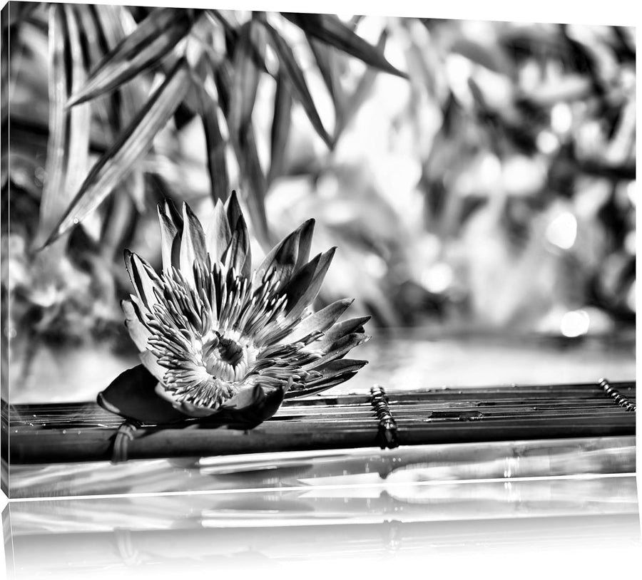 Pixxprint Seerose auf Bambus Wellness / 100x70cm Leinwandbild bespannt auf Holzrahmen/Wandbild Kunst