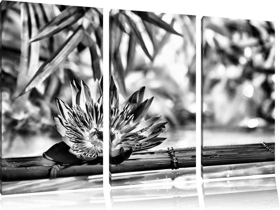 Pixxprint Seerose auf Bambus Wellness als Leinwandbild/Grösse: 3 Teilig (120x80) cm/Wandbild/Kunstdr
