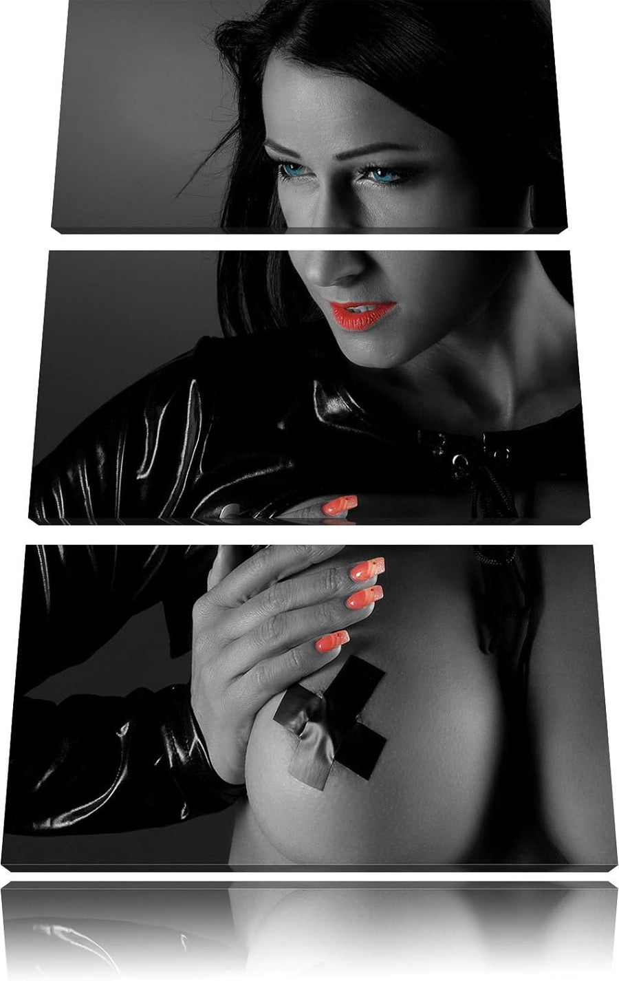 Pixxprint schwarzhaarige sexy Frau schwarz/weiss als Leinwandbild/Grösse: 3 Teilig (120x80 cm) cm/Wa