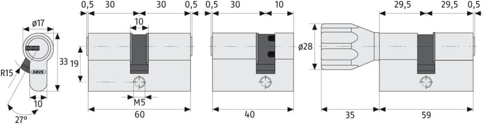 ABUS Profilzylinder E30NP 35/60 inklusive 5 Schlüssel, 18300, 35/60