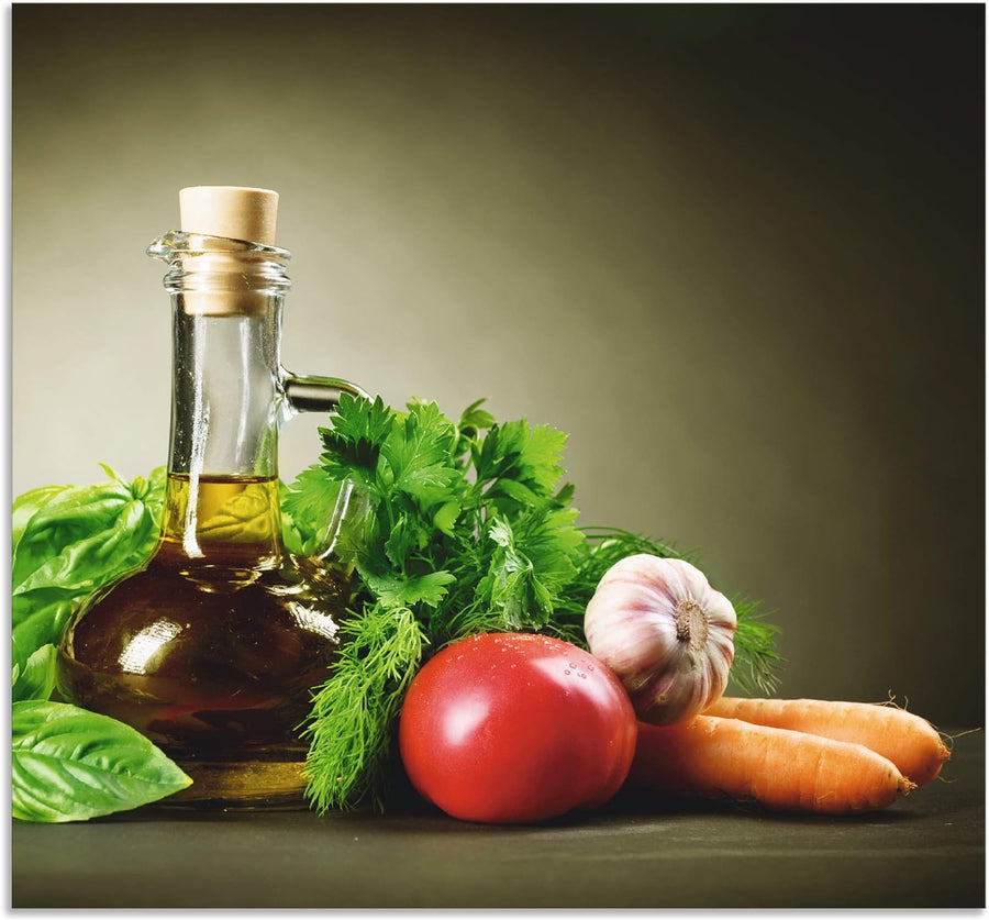 ARTland Spritzschutz Küche aus Alu für Herd Spüle 70x65 cm (BxH) Küchenrückwand mit Motiv Kräuter Ol