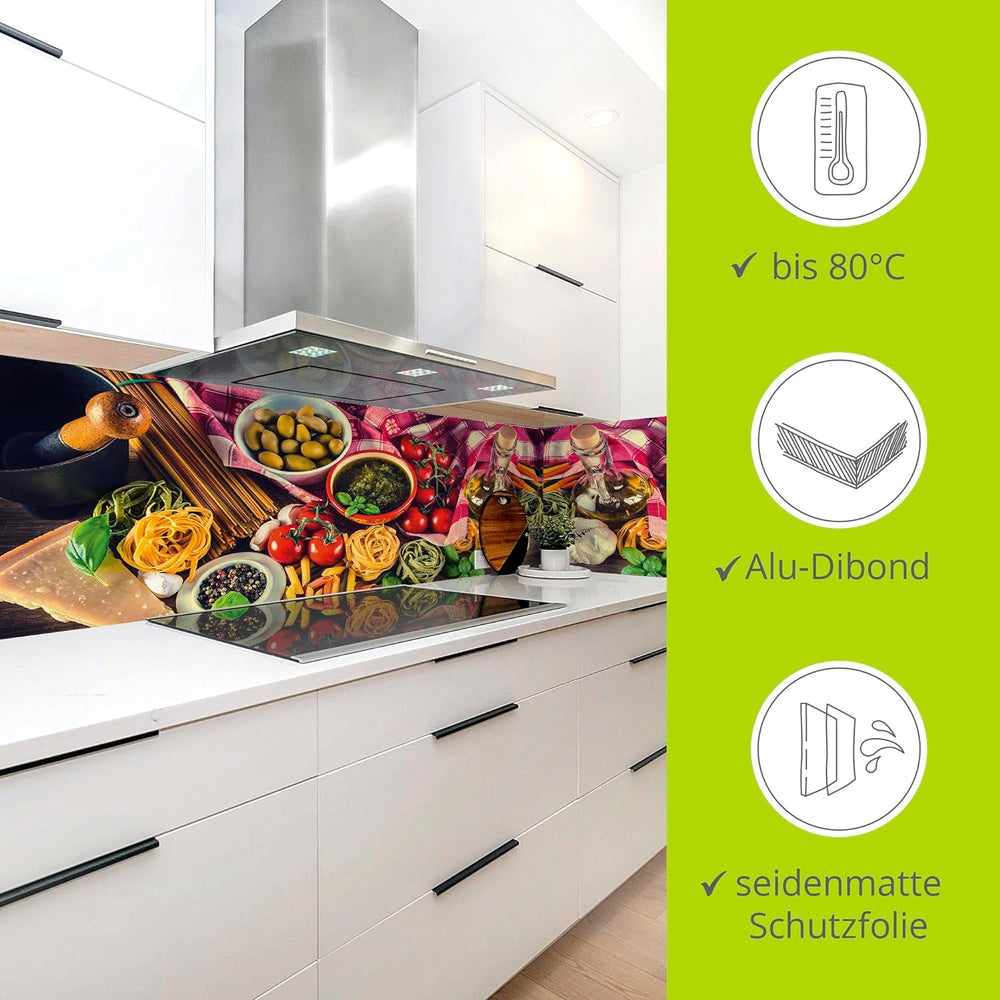 ARTland Spritzschutz Küche aus Alu für Herd Spüle 80x50 cm (BxH) Küchenrückwand mit Motiv Italien Es
