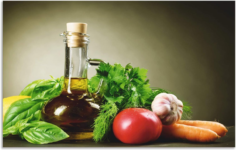 ARTland Spritzschutz Küche aus Alu für Herd Spüle 80x50 cm (BxH) Küchenrückwand mit Motiv Essen Gemü