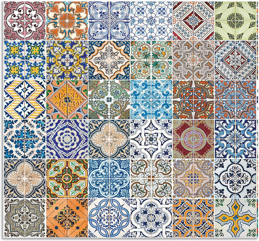 ARTland Spritzschutz Küche aus Alu für Herd Spüle 80x50 cm (BxH) Küchenrückwand mit Motiv Fliesenmus