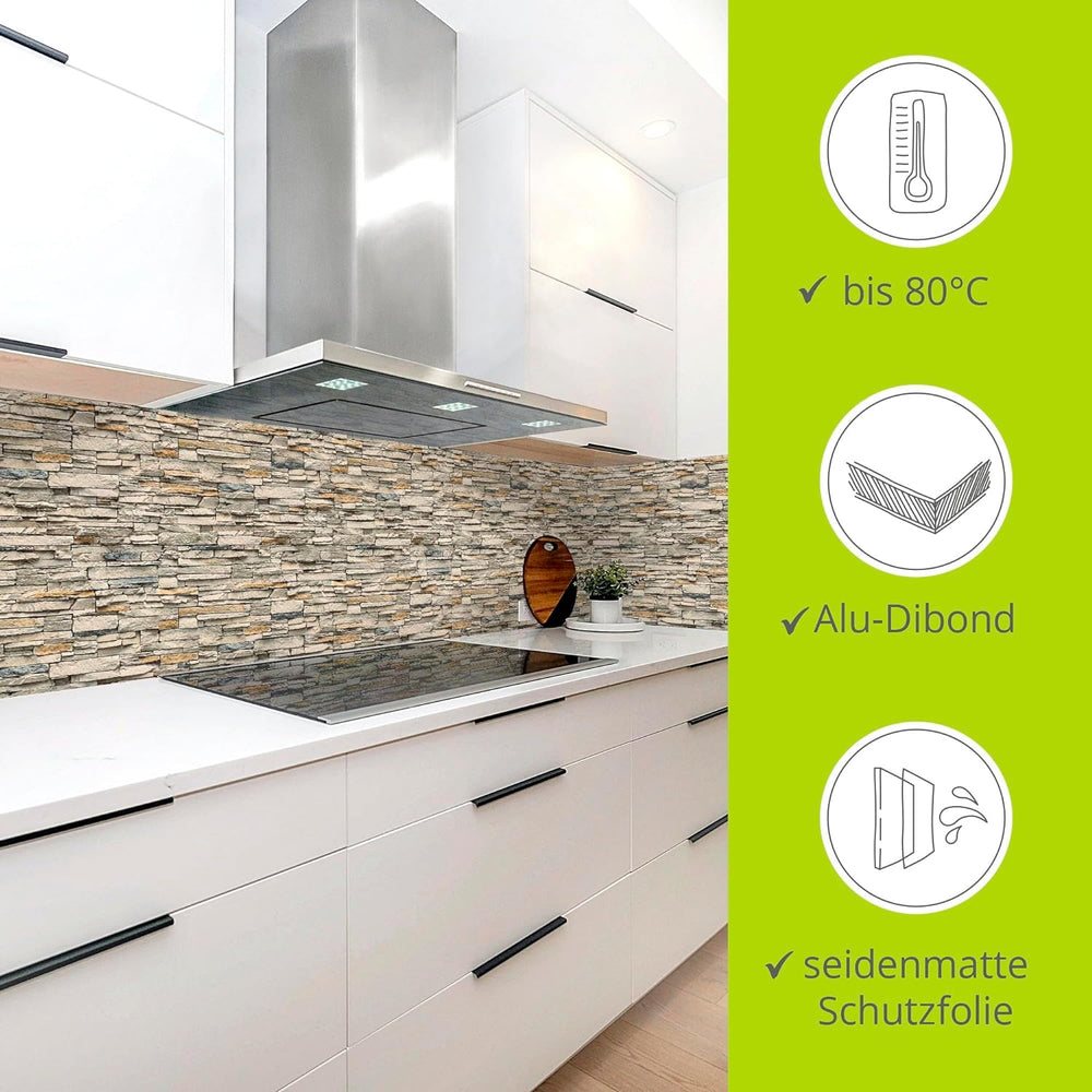 ARTland Spritzschutz Küche aus Alu für Herd Spüle 80x50 cm (BxH) Küchenrückwand mit Motiv Steinwand