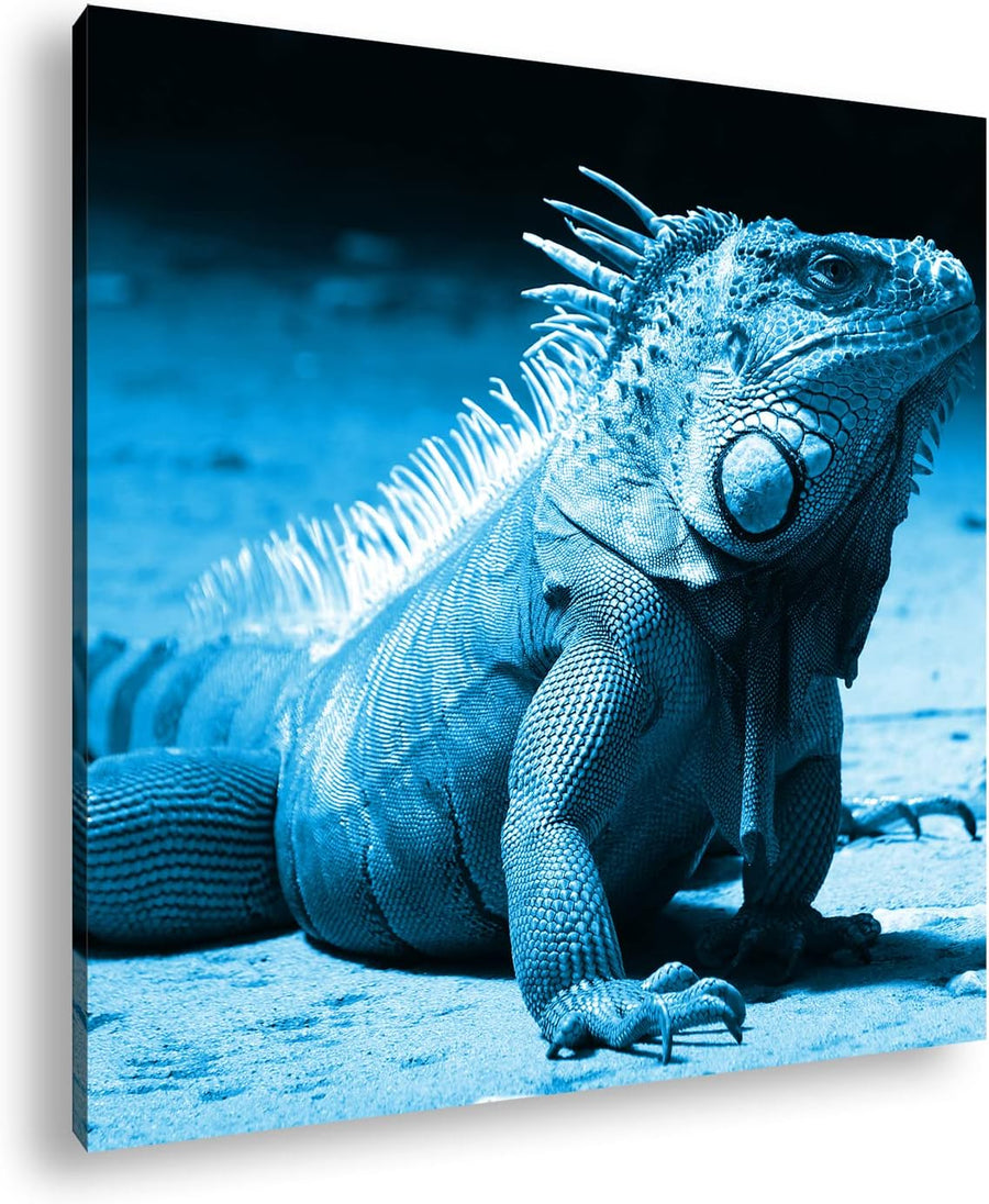 deyoli edler grüner Leguan Format: 80x60 Effekt: Monocrome Blau als Leinwand, Motiv fertig gerahmt a