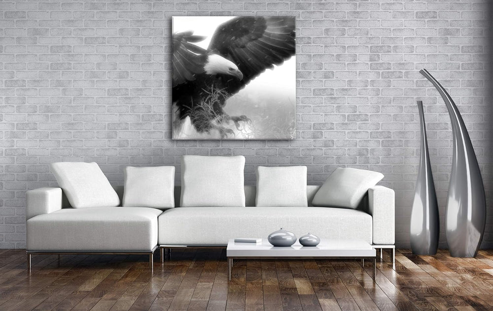 deyoli edler Adler im Sturzflug Format: 70x70 Effekt: Schwarz&Weiss als Leinwandbild, Motiv fertig g