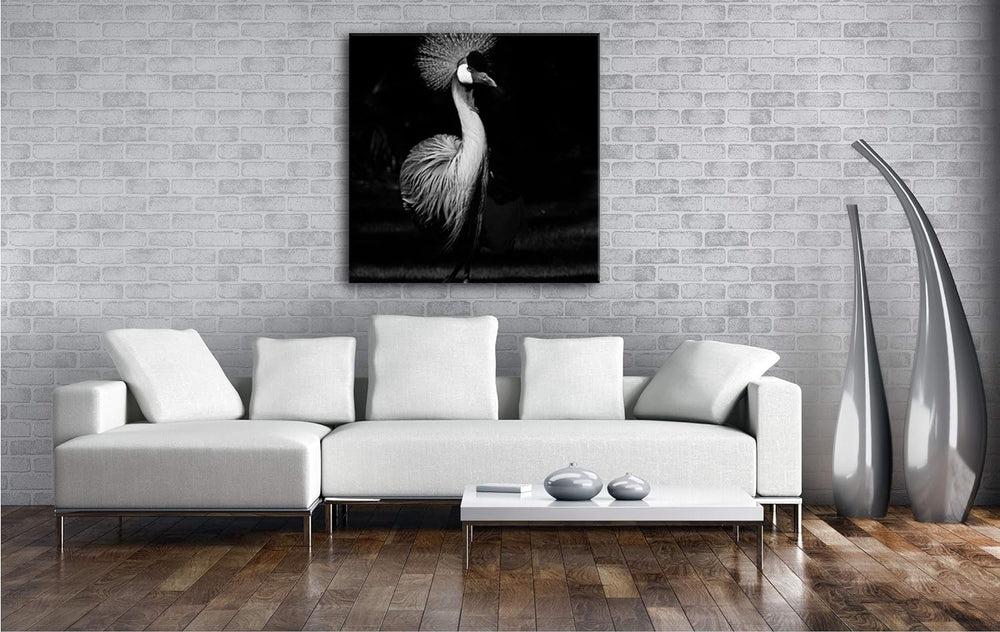 deyoli edler Kranich Format: 60x60 Effekt: Schwarz&Weiss als Leinwandbild, Motiv fertig gerahmt auf
