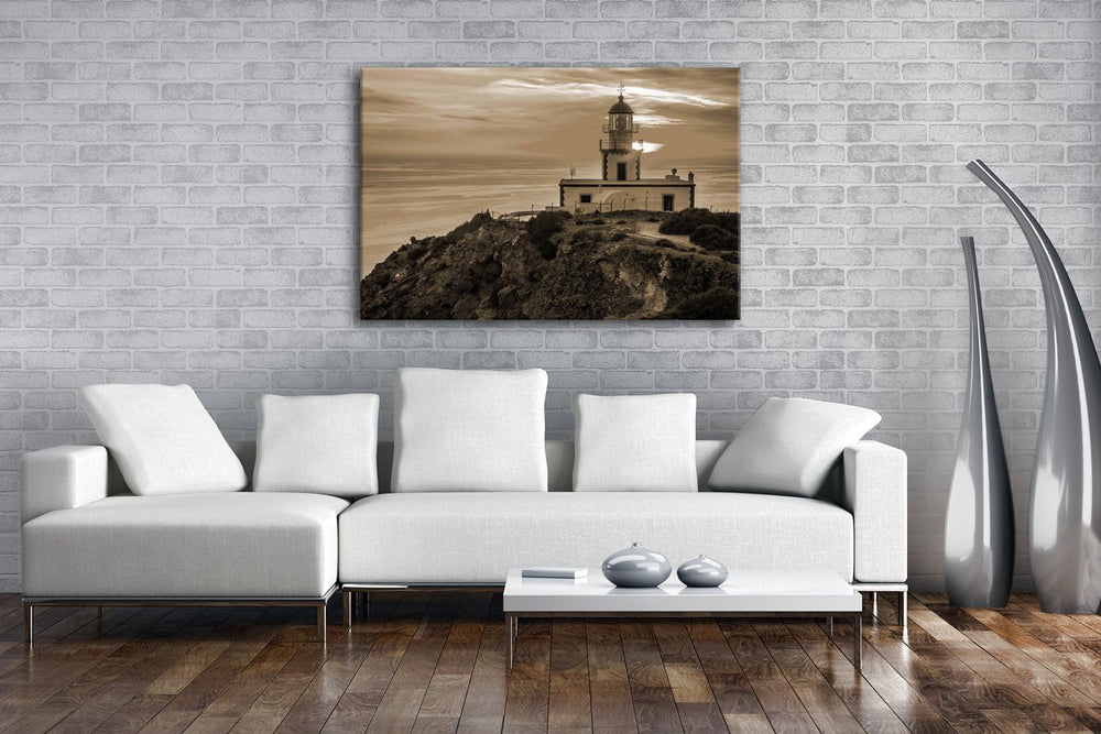deyoli edler Leuchtturm Format: 60x40 Effekt: Sepia als Leinwand, Motiv fertig gerahmt auf Echtholzr