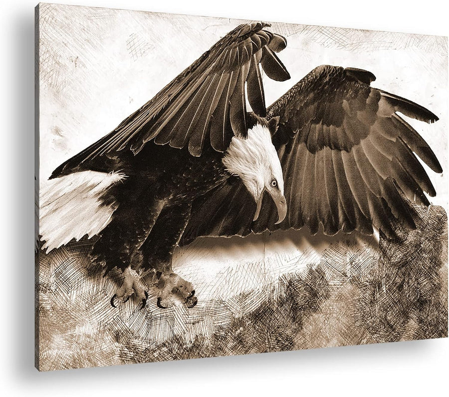 deyoli edler Adler Effekt: Sepia Format: 80x60 als Leinwandbild, Motiv fertig gerahmt auf Echtholzra