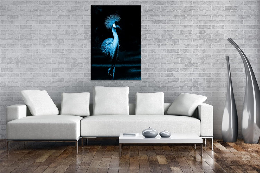 deyoli edler Kranich Format: 80x60 Effekt: Monocrome Blau als Leinwand, Motiv fertig gerahmt auf Ech