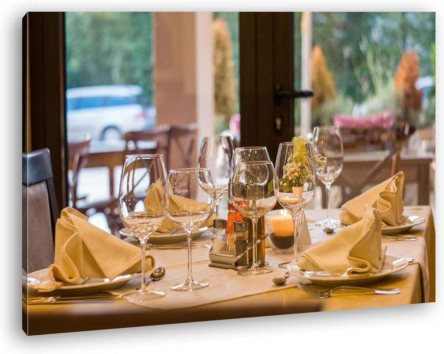 deyoli edles Restaurant im Format: 80x60 als Leinwandbild, Motiv fertig gerahmt auf Echtholzrahmen,