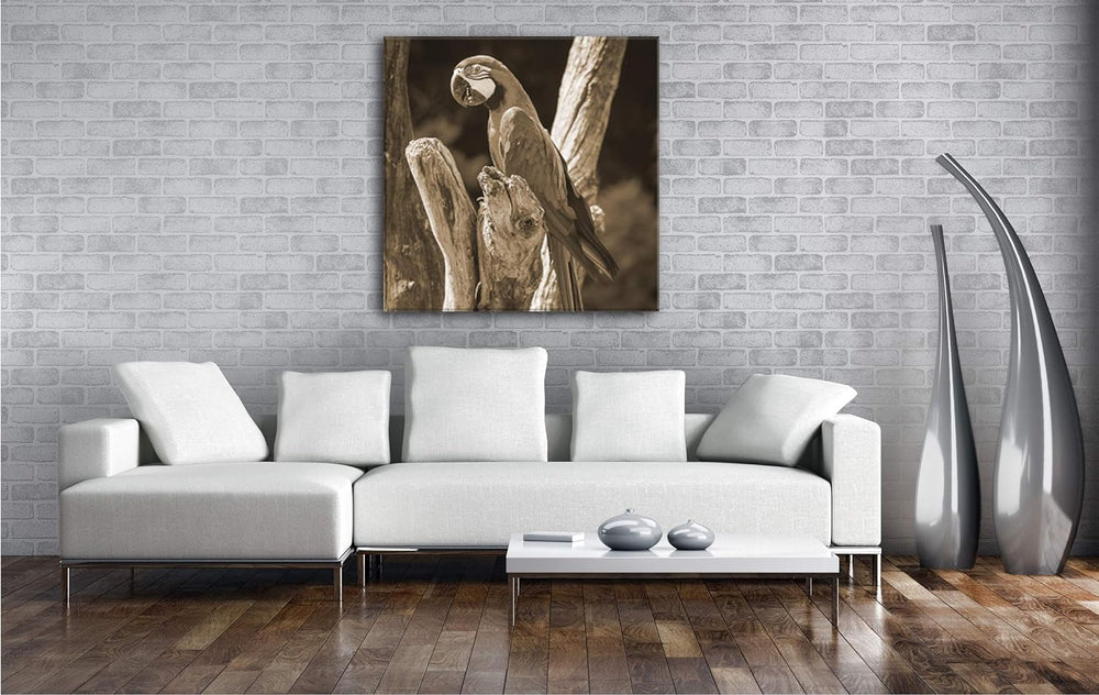 deyoli Edler Papagei Format: 70x70 Effekt: Sepia als Leinwandbild, Motiv fertig gerahmt auf Echtholz