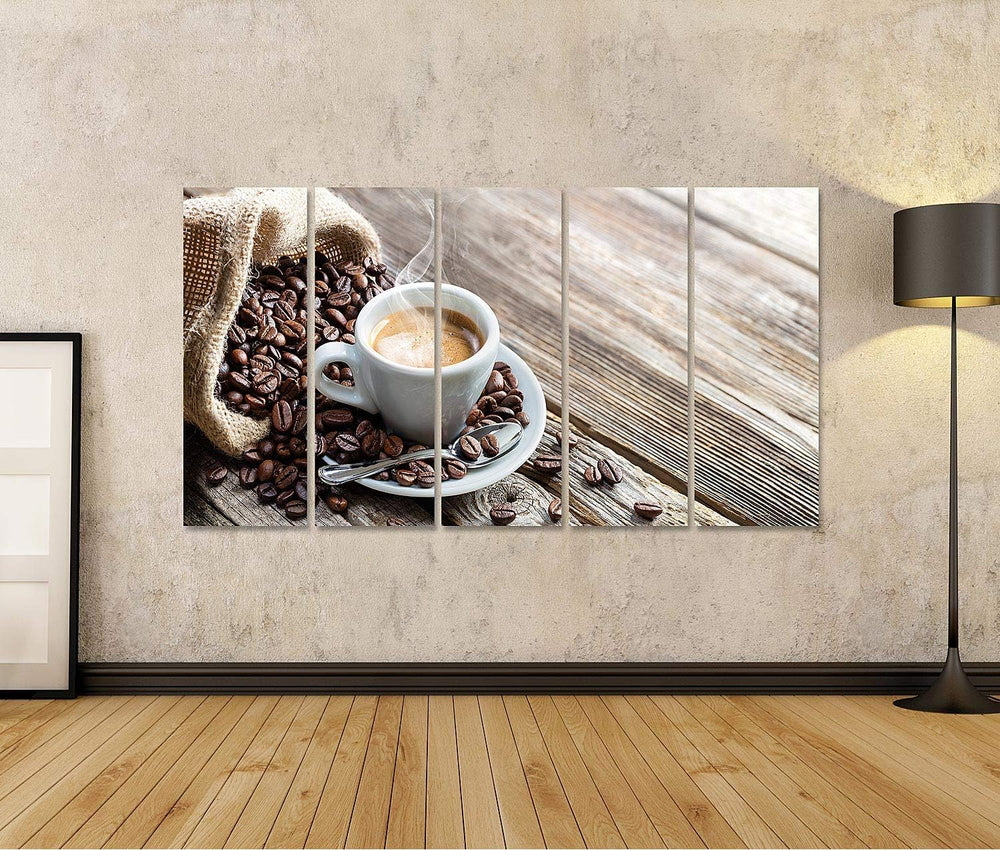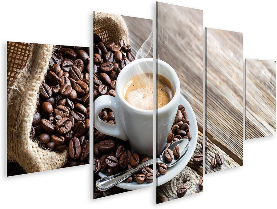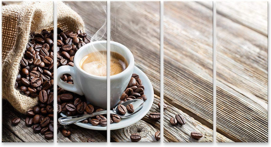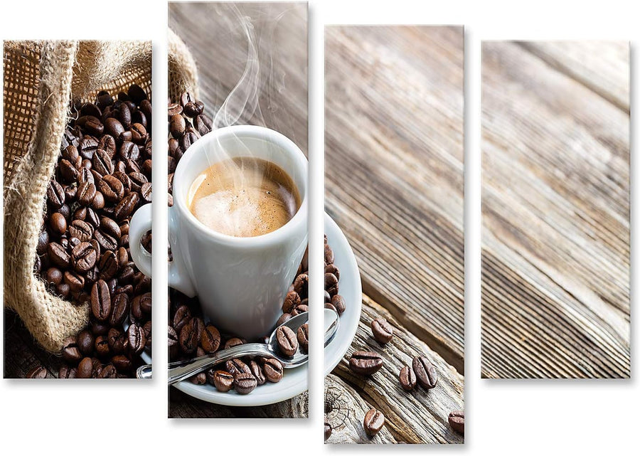 islandburner Bild auf Leinwand Espresso Kaffeetasse Bohnen Vintage Tisch Bilder Wandbilder Poster, L