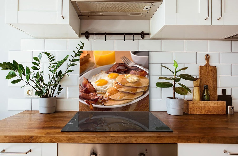Frühstück Herdabdeckplatte & Spritzschutz aus Echtglas | Für Herd-Kochfelder | 60x52 cm