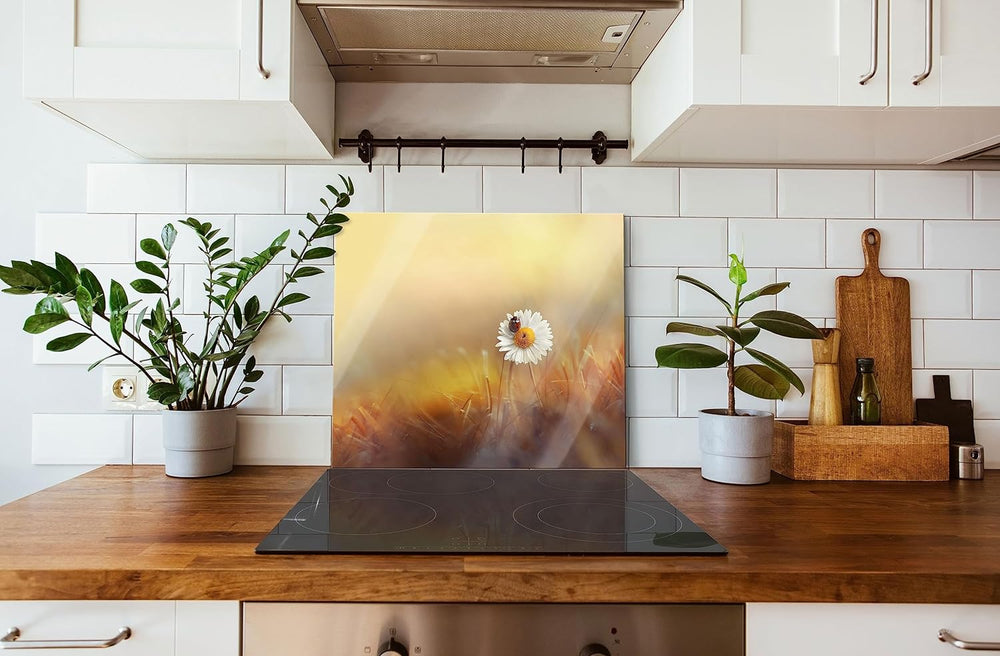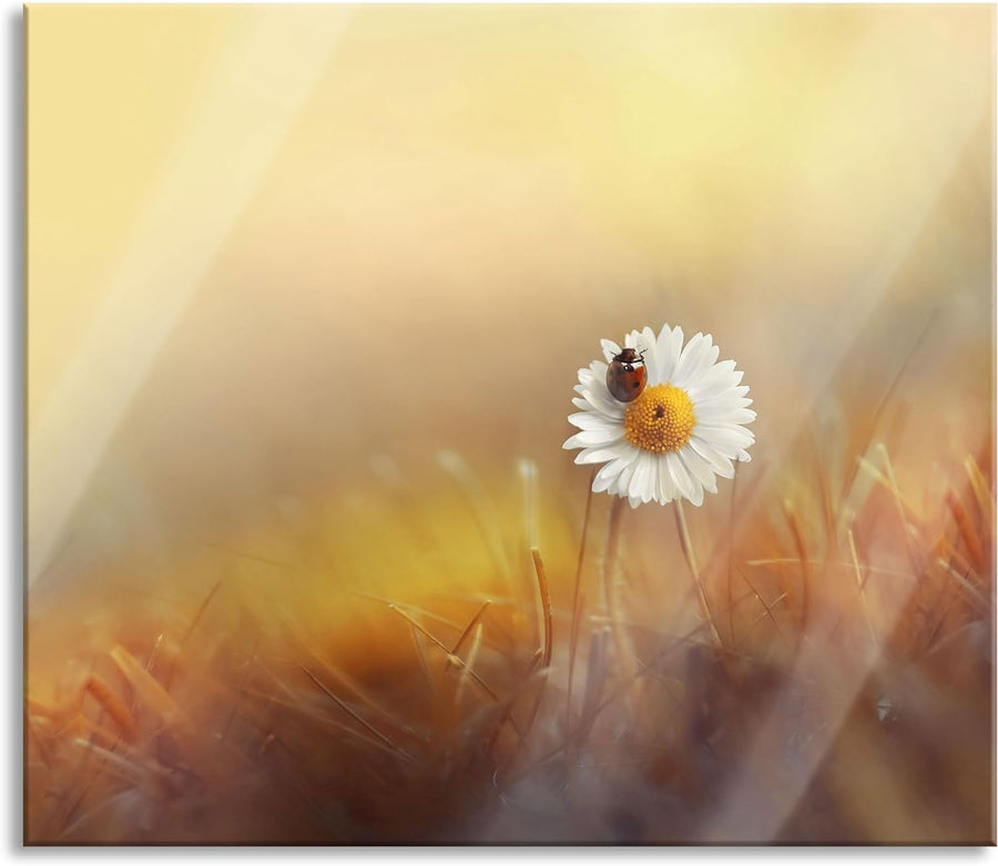 Gänseblümchen mit Marienkäfer Herdabdeckplatte & Spritzschutz aus Echtglas | Für Herd-Kochfelder | 6