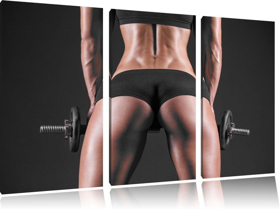 Pixxprint Sexy Frau mit Hanteln B&W Detail als Leinwandbild/Grösse: 3 Teilig (120x80 cm) cm/Wandbild