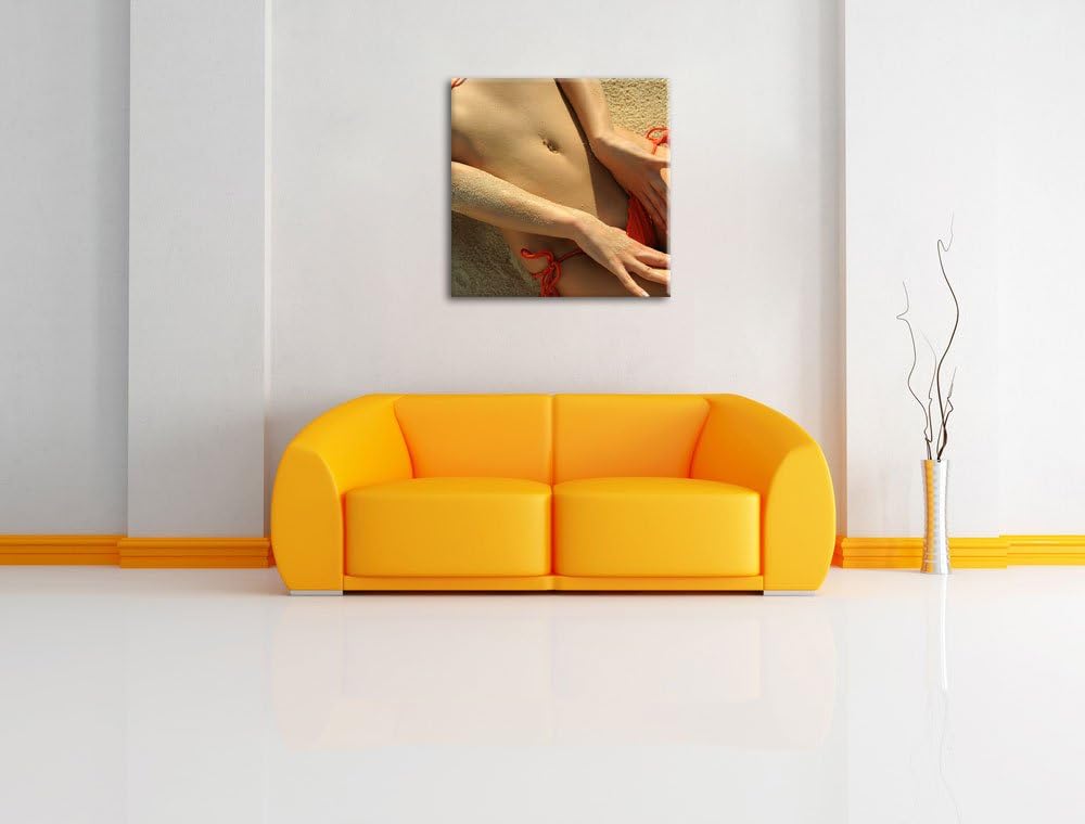 Pixxprint Sexy Frau im Bikini am Strand als Leinwandbild/Grösse: 70x70 cm/Wandbild/Kunstdruck/fertig