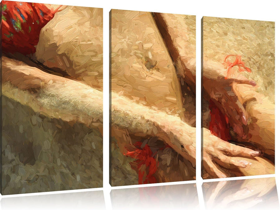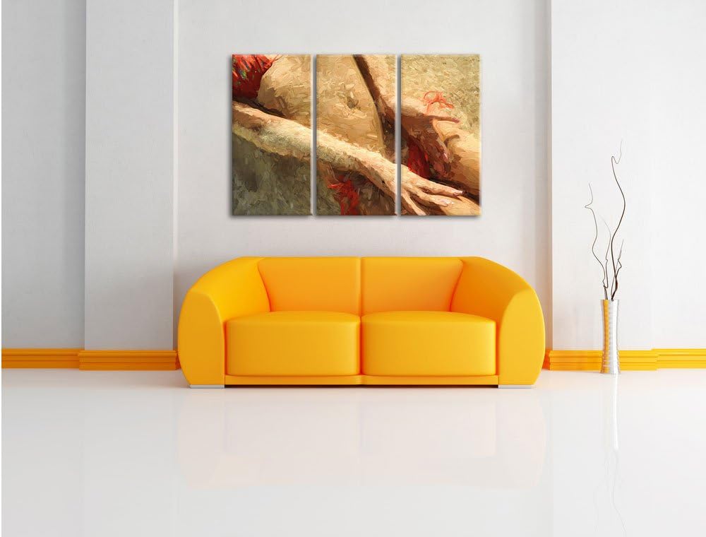Pixxprint Sexy Frau am Strand Kunst als Leinwandbild/Grösse: 3 Teilig (120x80) cm/Wandbild/Kunstdruc