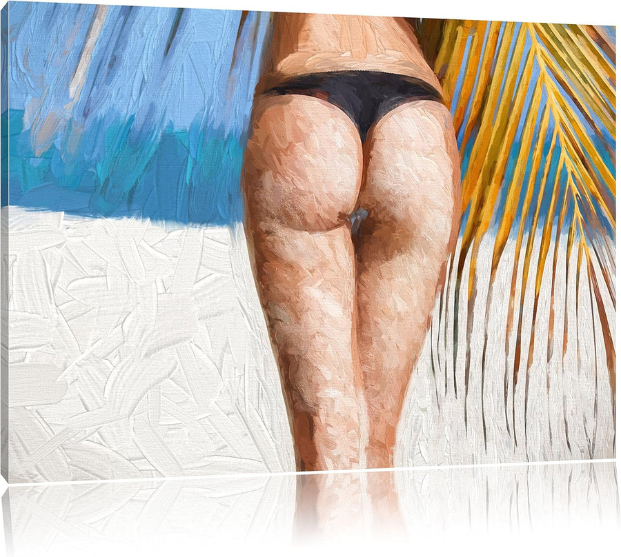 Pixxprint Sexy Frau am Strand Kunst als Leinwandbild/Grösse: 100x70 cm/Wandbild/Kunstdruck/fertig be