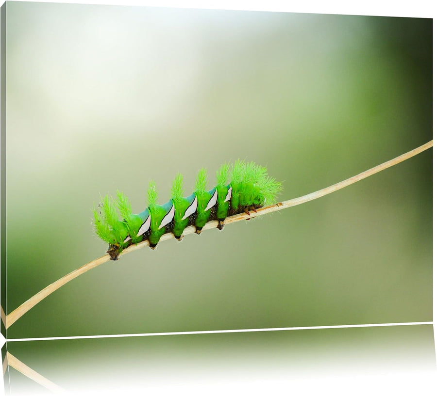 Pixxprint seltene grüne Raupe auf Leinwand, XXL riesige Bilder fertig gerahmt mit Keilrahmen, Kunstd