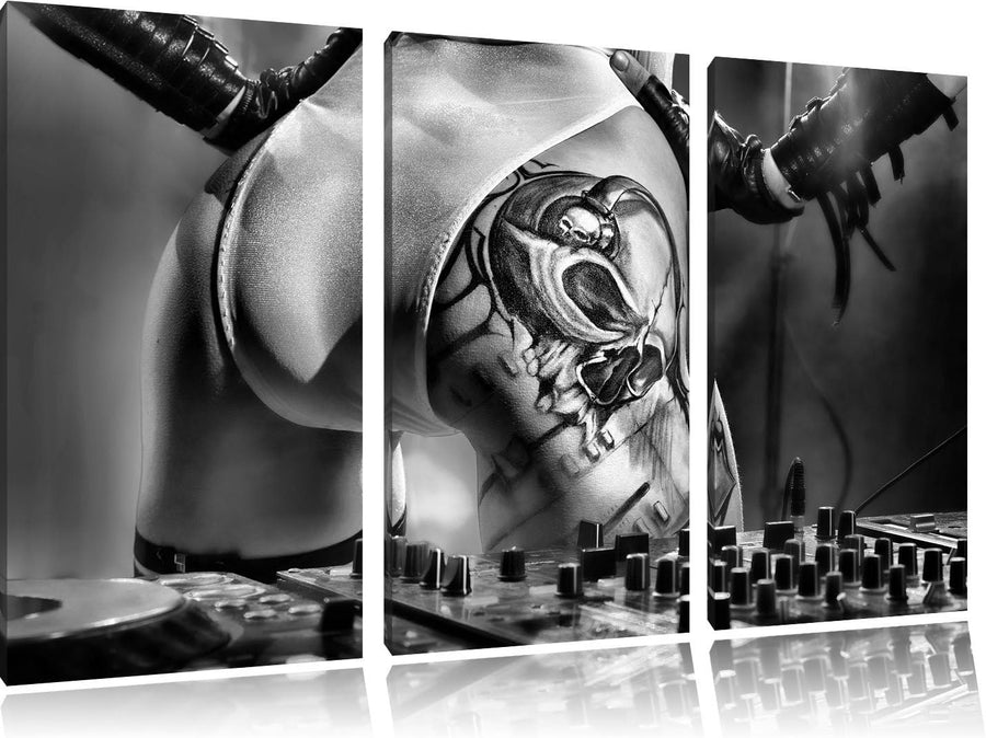 Pixxprint Sexy Frau am Plattenpult / 3-Teilig/Gesamtmass 120cm Leinwandbild bespannt auf Holzrahmen/